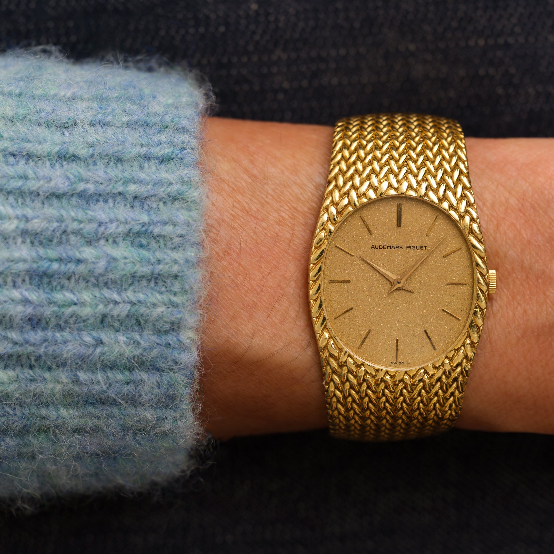 Vintage Audemars Piguet Cobra 18k Yellow Gold Adventurine Dial, Integrated Gold Bracelet, Manual Wind, Made in Switzerland c.1980s