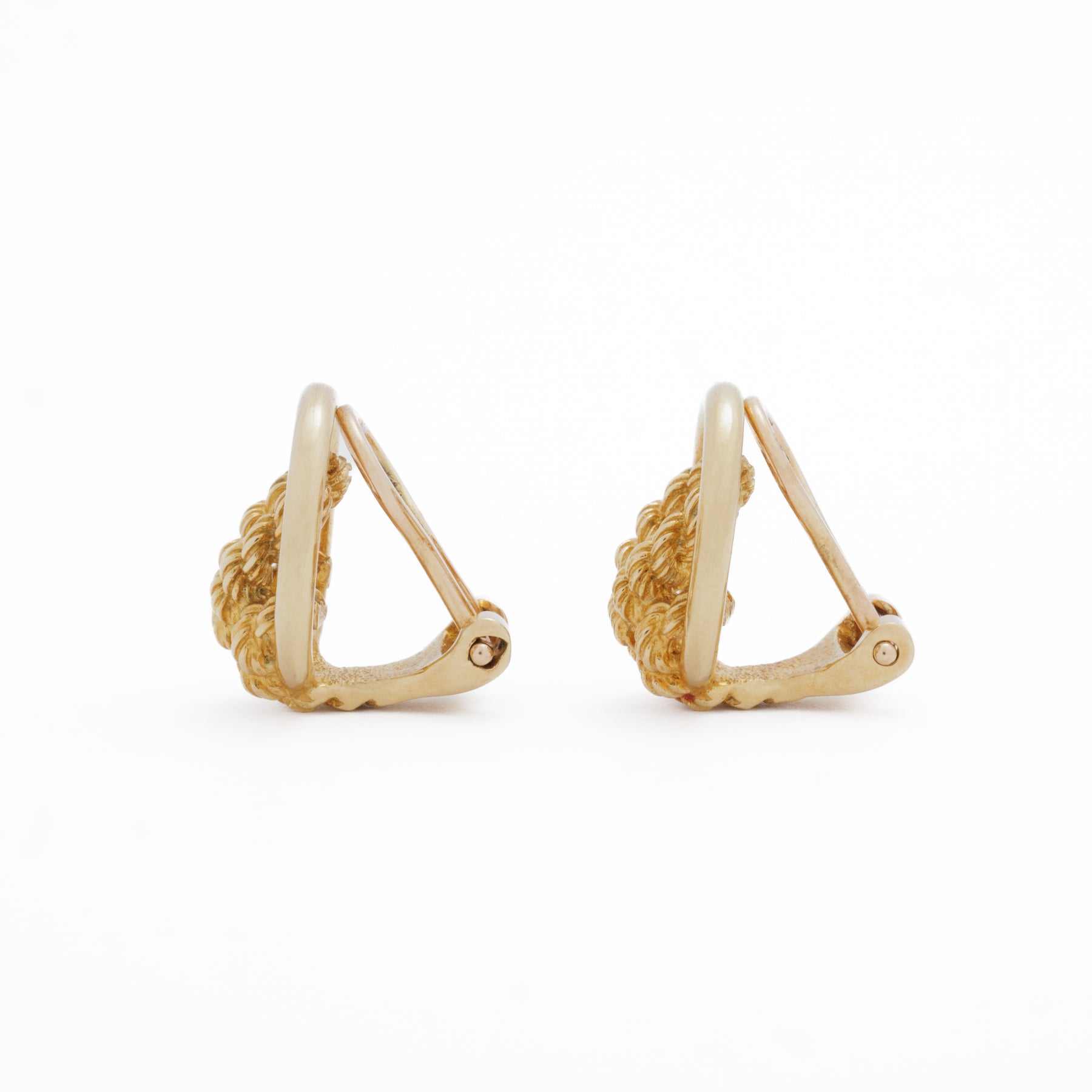 Vintage 18k Yellow Gold, Signed HERMÈS Rope Motif Clip-on Lever Back Earrings